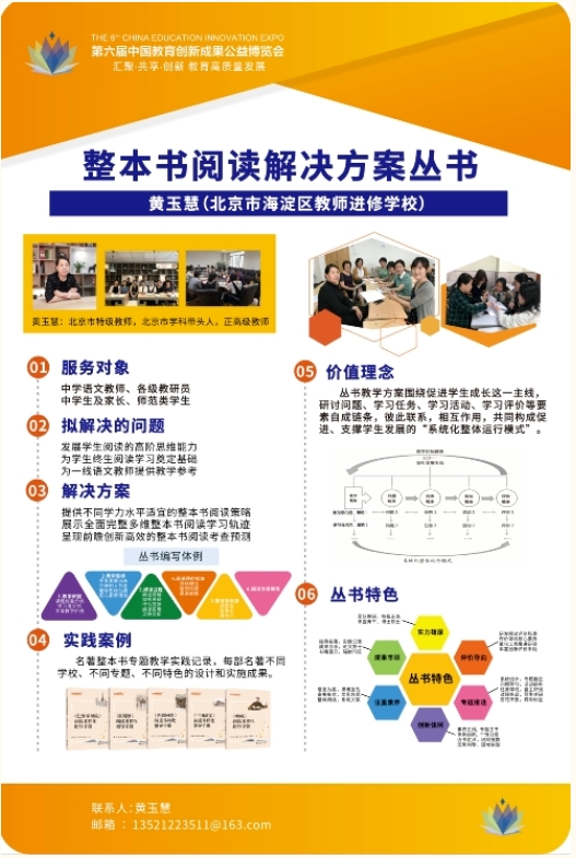 2018年参加完教博会后,黄玉慧老师带领的团队,并没有停下研究的脚步,而是在已有研究的基础上,对教学实践不断总结升华。2019-2022年《整本书阅读解决方案∙多样化策略》丛书(6册)陆续出版。2023年11月黄玉慧团队再一次参加了全国教育博览会,这套丛书熔铸了研究团队对整本书教学及阅读教学的思考。
