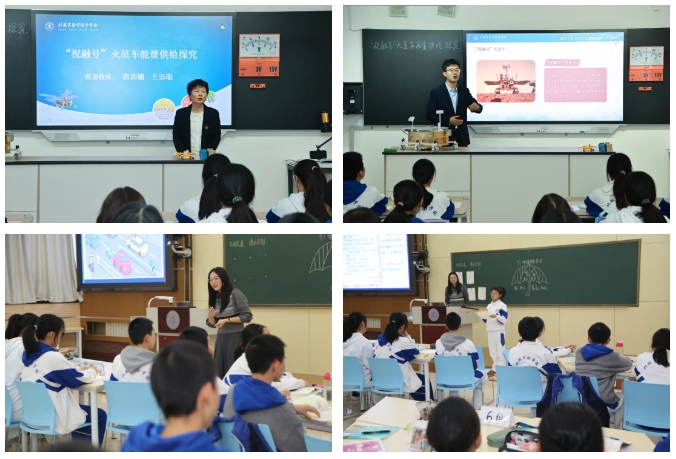 物理教研组长任艺老师作为本板块的主持人,首先汇报了物理教研组通过大学和中学的合作,开发的系列涵盖力学、电磁学和光学领域的校本课程。课程体系的建立发挥了大学教师的专业深度和中学教师的教学经验,实现优势互补。随后,物理教研组郭剑楠老师、来自北京航空航天大学王崇聪老师,共上了一节研究课《“祝融号”火星车能量供给探究》,这节研究课是大学与中学合作打磨的跨学科主题课程的内容,大学教师发挥工程思维的优势,中学教师立足学情寻找最佳契合点,实现了大中教师教学的无缝衔接。