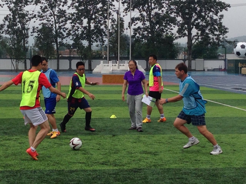 海淀体育骨干教师足球教学技能国际研修第一阶段圆满结束。在第二阶段的研修中,学员将进行岗位实践,改进足球教学,形成教学案例,开展足球教学案例集体研修;西班牙教练通过网络,远程指导学员足球教学,解决教学实践中的问题。通过第二阶段研修形成的海淀中小学足球教学实践的案例故事将在区内外分享交流。