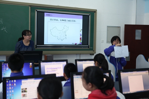 第三组为首都师范大学第二附属中学李美茹老师执教的《尺牍寄关心—探索excel应用(一)》和北方交通大学附属中学王博老师的《动画设计制作之中国行政区识图小游戏》。课堂教学中采用工具软件,为学生在综合实践活动中,运用自身知识解决相应问题提供了自主的学习空间。纪方教授肯定了两节课的研究方向,运用多学科知识综合应用解决问题的同时,侧重信息能力的提升。他强调综合实践活动中要以本学科特色为主,通过项目整合多个学科的知识。信息技术课堂教学既要遵循课程标准要求,又要突出海淀特色。