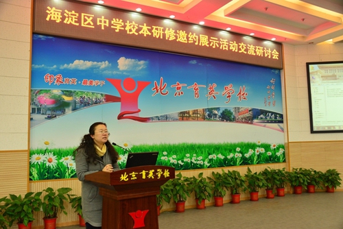 为发挥校本研修优质学校的引领示范、辐射带动作用,促进区域校本研修整体水平的提升,海淀区“十三五”建立了校本研修邀约展示活动制度。2016年11月15日,海淀区中学校本研修邀约展示活动暨海淀区中学教师培训负责人高级研修班现场教学活动在北京市育英学校成功举办。首都师范大学杨光副教授,海淀区教师进修学校常务副校长申军红,海淀区教师进修学校校长助理、师训部主任赵杰志,师训部副主任刘锌,项目负责人王秀英老师,海淀区第二期中学教师培训负责人高级研修班学员和全区物理、语文骨干教师代表等120余人参加了此次活动。