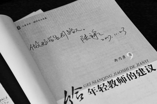 互动环节之后,陆云泉主任为新任教师代表赠送了教育经典著作。在每一本著作中,陆云泉主任一一亲笔签名,并寄语新任教师“做好学生引路人”,表达了他对新任教师的殷切期望。