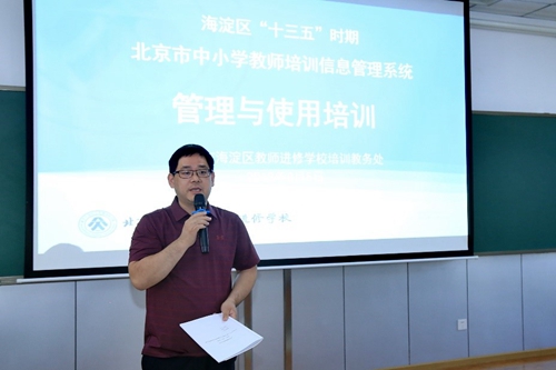 海淀区教师进修学校副校长赵杰志代表区继教办作培训动员讲话。他强调“北京市中小学教师培训信息管理系统”是评定区、校完成教师继续教育工作情况的重要依据之一,是核发北京市“十三五”时期教师培训结业证书的依据,希望每一名系统管理员在操作与管理过程中,明晰政策、把握节点、调整思路、高效准确的执行每一项工作,确保每一位教师培训学分的正确。