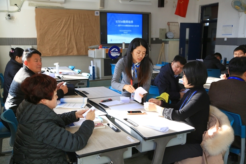 过程中,学员们互助合作、共同设计图纸、自主选取材料、创编有趣故事,在“捣鼓”中探索、思考、讨论。最后,主持人请学员再次思考活动对课程要素和STEAM课程实践的启示。学员们表示,“这种实践式、沉浸式、合作式的科学课程,极大地冲击了传统的教学观和课程观,带来了全新的学习体验,过程中获得了知识、兴趣和信心。”