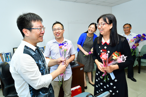 图1 学校领导为教职员工送上鲜花