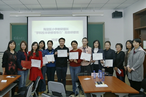 “十三五”以来,海淀区将校本培训者培训作为提升区域校本研修品质的重要举措。在成功举办两期教师培训负责人和三期中学教研组长培训后,海淀区于2018年10月启动首期小学教研组长高级研修班。2019年10月15日下午,首期小学教研组长高级研修班在海淀教师进修学校举行结业仪式。经历为期一年的研修,各位教研组长完成集中研修、异地研修和实践研修三个模块的课程,系统学习校本研修的理论、策略和方法,学科组研修的先进经验,以及系统设计和专业实施学科校本研修,从而提升自身学科校本研修领导力。参与结业仪式的有来自海淀区各小学的45位教研组长,海淀区教师进修学校支瑶副校长,师训部刘锌主任和张晓副主任,校本研修项目负责人迟淑玲老师和王秀英老师。研修班结业仪式由刘锌主任主持。