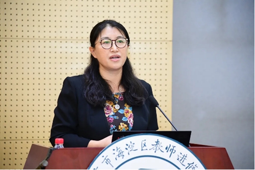 师训部刘锌主任、崔莹莹老师以《“新”培训 新挑战 新成长》为题,展示了团队在疫情期间的线上“新培训”,以“老中青”为代表的王秀英老师、樊凯老师和韩民扬老师分享了线上研修的“新成长”。