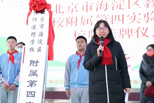 罗滨校长和张秋敏校长共同为海淀进校附属第四实验小学揭牌