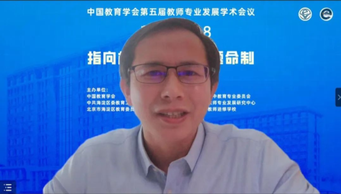 闫寒冰教授聚焦教育数字化转型与教师专业发展,就教育数字化转型对教师能力、教师研训的方向与要求作报告。