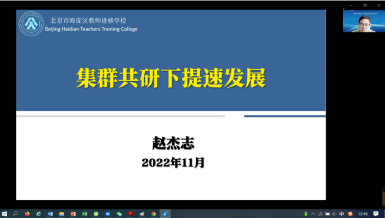 海淀区教师进修学校工会主席赵杰志对本次研修做《集群共研下提速发展》的总结发言。他强调了新时代背景下集群共研的必要性:教研要聚焦课标要求和推进中的关键问题,重视关联性、持续性和进阶性,要深刻领会学校体育工作,特别是课堂教学的重要性,在先行先试中突出超前一公里思考的勇气和魄力,在循证改进中做好最后一公里的实践突破和创新。