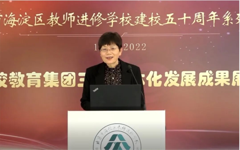 汪局长介绍了杭州市西湖区历经20年集团化办学不断迭代升级的历程,目前已形成全域覆盖、多模共存、优质共生的集团化办学样态。就本次海淀进校教育集团的成果展示,汪局长分享了三点感受:(1)作为一所有着50年办学历史的教师进修学校,引领海淀教育始终走在全国教育改革的最前沿。(2)成立仅3年的海淀进校教育集团,在当前集团化、一体化办学的大潮下,打造出了一个集团化高质量办学的海淀样本。(3)海淀师生们在追求专业发展、实现自我成长的道路上所表现出的专业性和创新性。