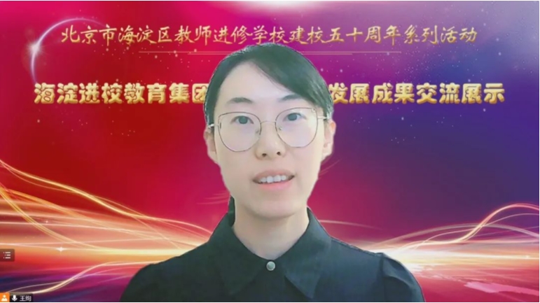 海淀进校集团办公室王刘依老师同海淀进校附属中学宋方老师、海淀进校附属玉渊潭中学谢丽娟老师,以《立足核心素养 指向课程育人》为题分享了集团共享课程建设的实践探索。王老师细致介绍了集团4大门类20门共享课程的建设背景;注重课程研发和实施共同体建设,强调课程目标、内容、实施与评价的一致性,共建共享的开展历程;发展学生实践创新素养、提升教师的跨学科专业素养和课程开发能力、促进学校“跨学科”课程发展的实施成效。
