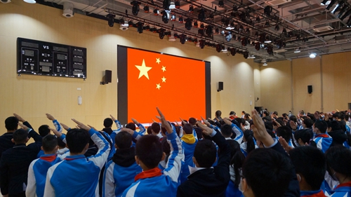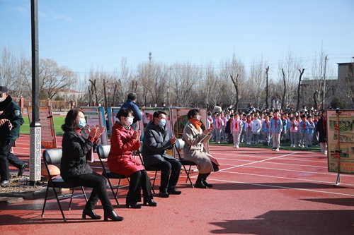 少先队员代表和优秀教师代表在讲话中号召同学们,在新学期要努力拼搏、奋勇争先,努力成为德、智、体、美、劳全面发展的新时代好少年!学校领导为获奖同学颁发了奖状,赵岩副校长随机采访获奖学生分享自己的新学期新愿望。周信达校长进行了新学期致辞,表达了对学生的期望、新学期的期许。海淀进校李宏伟副校长号召全体师生要踔厉奋发,勇毅前行,在新学期能够张开双臂迎接春天、放飞自我绽放青春,创造出属于自己更精彩、更广阔的天地。
