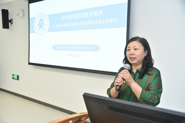 引导性发言环节,姚守梅副校长从价值取向、坚实基础、技术路线、引领改进四个方面,提出教学干部教学质量分析及循证改进工作建议。